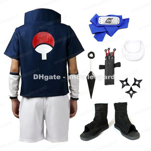 Compre Naruto Uchiha Sasuke Cosplay Traje Conjunto Armas Kunai Shuriken Diadema Zapatos De Halloween Para Hombre Niños Traje A 6092 Del Snowleopard