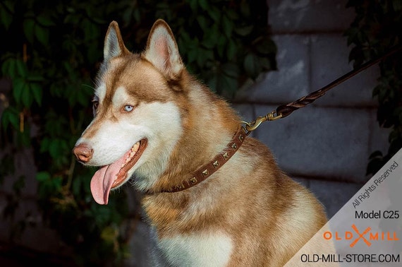 Husky Siberiano Perro Collar De Cuero Con Tachas De Latón De 1 Fila 1 Pulgada 25 Mm De Ancho Modelo Oldmill C25